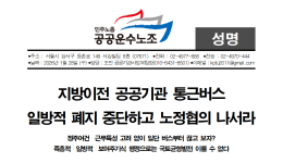 [성명] 정주여건 개선 없는 통근버스 중단,균형발전 정책이 아니다 정부가 혁신도시 공공기관 통근버스 운영을 전면 중단하겠다는 입장을 밝혔다. 정부는 이를 지방균형발전과 정주율 제고를 위한 조치라고 설명하고 있으나, 정주 여건이 충분히 갖…2026-02-04