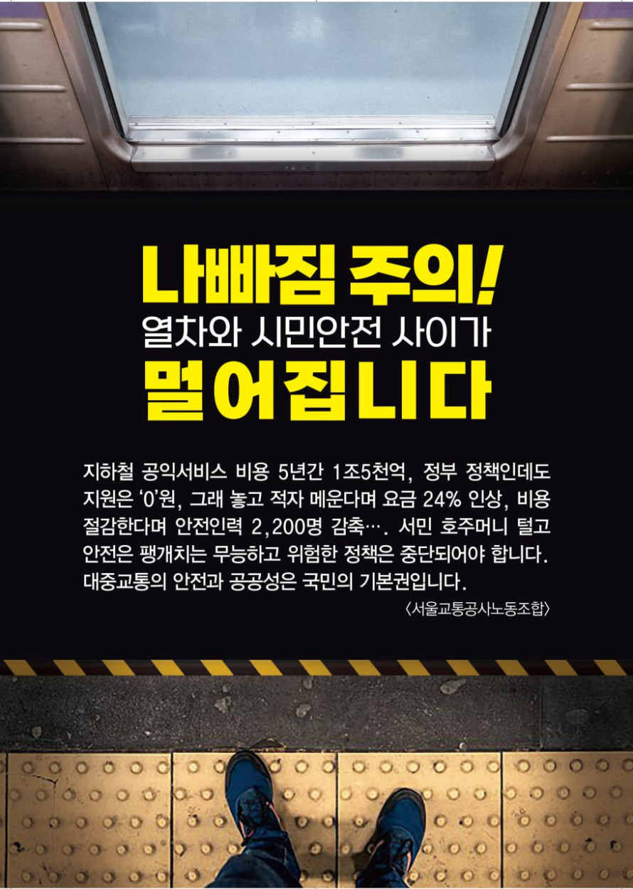 서울교통공사노조 9일 경고파업, 인력감축, 안전업무 외주화 끝까지 막아낸다