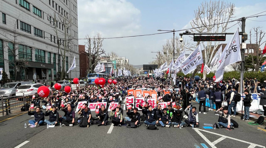 노동개악과 노조파괴, 구조조정-민영화 등, 온갖 공공성-노동권 파괴 정책이 연일 쏟아지고 있는 가운데, 공공운수노조가 윤석열 정부에 맞서 2023년 첫 대규모 도심 집회를 개최했다. 공공운수노조는 3월25일(토) 오후1시30분부터 서울 대학로 이화사거리에서 조합원 3천여명이 참석한 가운데 결의대회를 열어 국가책임 예산확보와 실질임금 인상 등을 촉구하고, 2023년 공동파업까지의 투쟁을 결의했다.