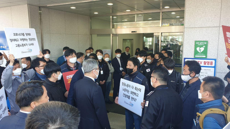 [포토뉴스] 항공/공항 현안사업장들 노동부 장관에 항의, “코로나19 극복, 노동자의 목소리를 들어라!”
